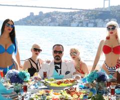 Adnan Oktar pakt in zijn bizarre tv-programma’s graag uit met siliconenbabes en homofobe uitspraken.