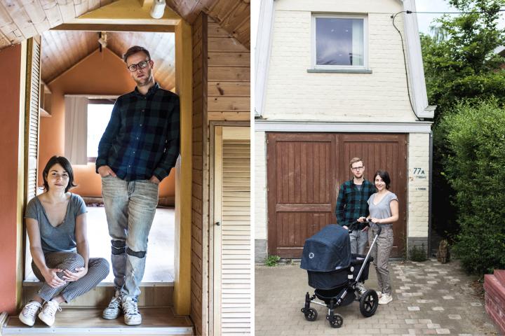 Sara: ‘We kunnen dat gebouwtje niet ineens 20 meter verplaatsen. Volgens ons was die wet voor interpretatie vatbaar, maar de stadsdiensten hebben ervoor gekozen om die strikt toe te passen. Ik voel me soms schuldig. Kunnen we meer doen? Moeten we iemand in huis nemen? Maar we zijn jonge ouders – Max is nu 5 maanden – en ons huis is erg open en niet zo groot. Zo loopt de badkamer zonder deur door in onze slaapkamer. Iemand echt in huis nemen is zo goed als onmogelijk.’