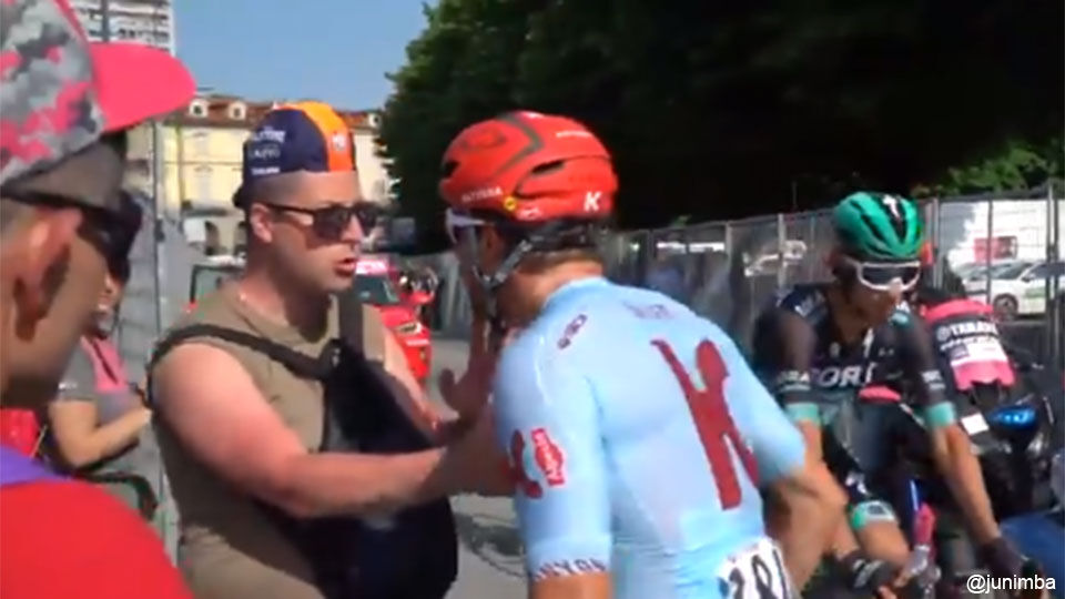 VIDEO: Woeste Haller leest wielerfan die bidon uit mond plukt de les