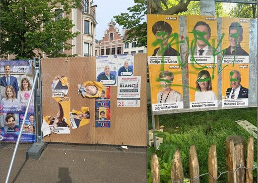 De laatste tijd kan je opvallend veel gescheurde, bekladde of weggehaalde affiches zien in Brussel. "We zien het vooral bij ons," klaagt Brussels N-VA-woordvoerder Diederik Demuynck.