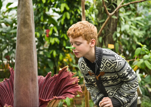 In Plantentuin Meise is dinsdagmiddag opnieuw een reuzenaronskelk beginnen bloeien. De plant, ook "stinkbloem" of "penisbloem" genoemd, meet maar liefst 217 centimeter.
